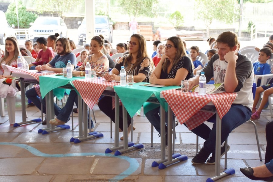 Os jurados Maurício Barbieri, Jaqueline Henz, Camila Luíza Mallmann, Ricardo Ledur Gottardo e Patrícia Bissani avaliaram a melhor apresentação, que representará a escola na grande final.