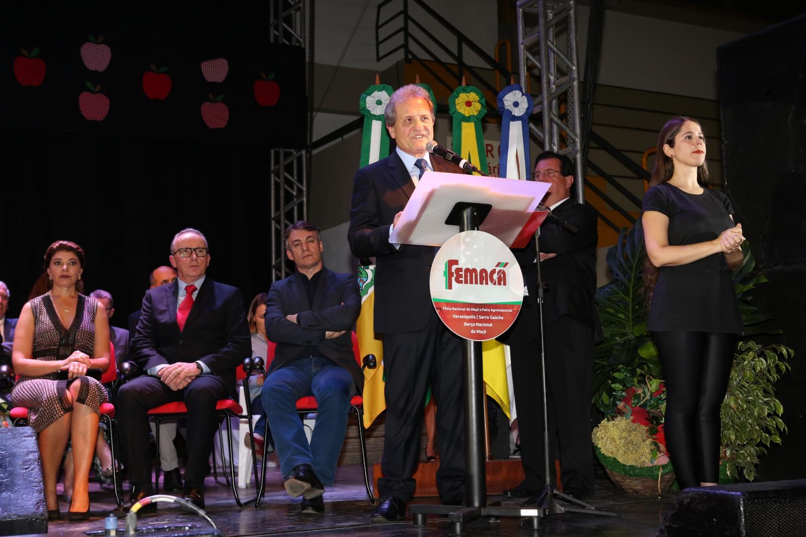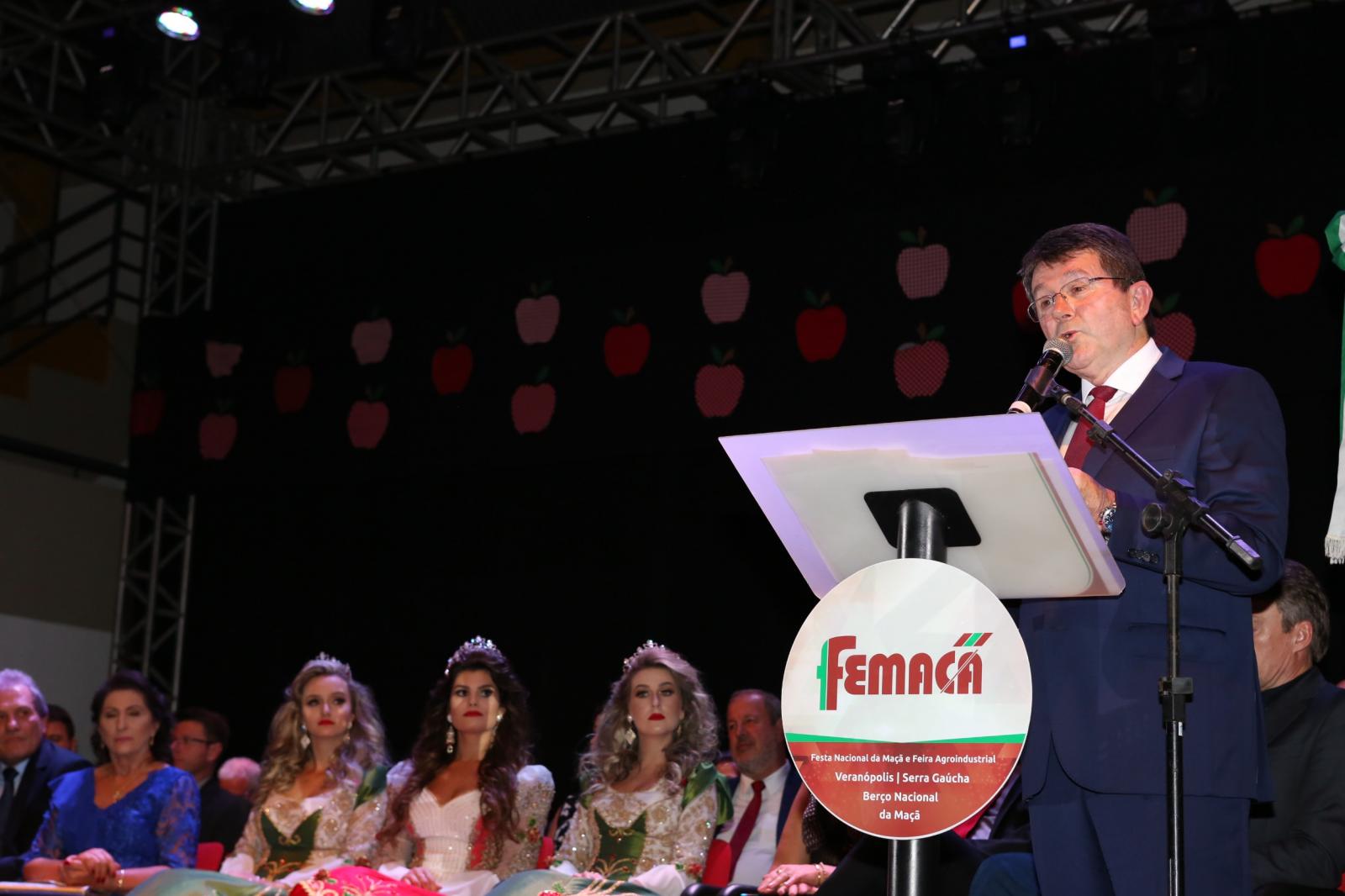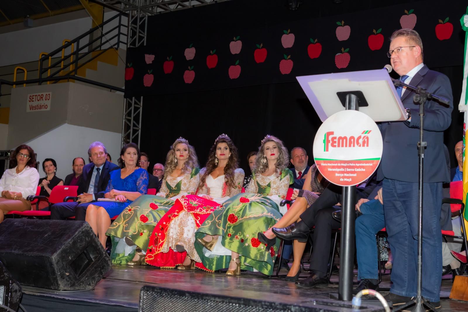 Uma cerimônia no Ginásio Leonir Antônio Farina, em Veranópolis, com a participação de mais de 500 convidados, entre eles o vice-governador do Rio Grande do Sul, Ranolfo Vieira Júnior, deputados estaduais e federal, e prefeitos, vereadores e cortes de diversos municípios da Serra gaúcha, marcou a abertura oficial da X Femaçã - Festa Nacional da Maçã e Feira Agroindustrial, nesta sexta-feira (12) à noite. O evento segue neste final de semana e também nos dias 18 a 21 de abril, no Parque de Exposições José Bin.