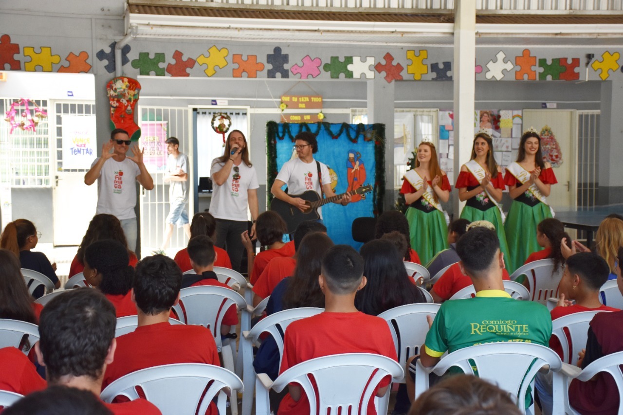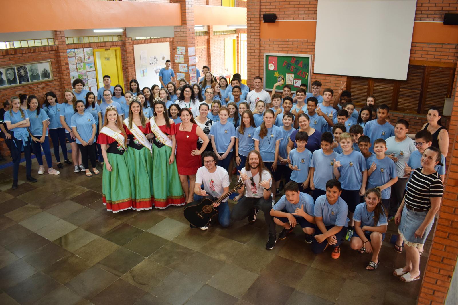 A comitiva teve o objetivo de incentivar os talentos musicais de Veranópolis e da região, para que possam se preparar para as inscrições que acontecem em fevereiro de 2023, junto à escola de referência do aluno.